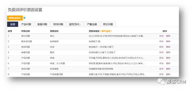 案例2:检查评价,了解评价中反馈的问题,从评价中了解客户。针对评价中容易出现的词汇,设置成“负面词评价原因”,后期可以根据这些原因直接筛选到对应客户,做针对性的安抚、服务或者是营销。