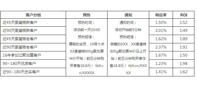 案例10:客户30天未购买时,发送一条引导短信,给予半价的优惠,引导客户进行回购短信内容——亲爱的上官婉儿,感谢您曾经的光顾与支持,本店为表示感谢,特送上半价购一次,搜索XXX进店联系我们吧~