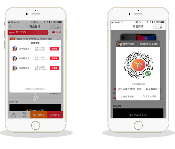 可设置商品参加拼团,通过社交达到粉丝裂变效果