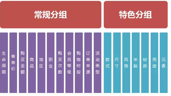 其中常规分组中的数据是CRM系统可直接获取的,特色分组中的数据就需要进行收集,一般收集的方式有问卷调查、客服收集打标、评价整理获取等等。