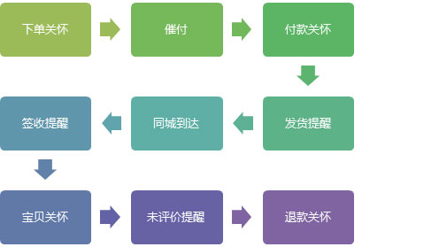 客户服务主要包括两部分,一部分是订单流程服务,即在客户购买过程中实时跟进客户状态,解决问题提供服务。另一部分则为主动关怀,则是对于没有处于购物期的老客进行关怀,提升老客对品牌及店铺的好感度,同时防止无购物期间客户对店铺遗忘。