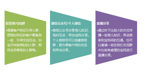 3. 特色服务--特色交流网组建,利用母婴类目客群爱交流、爱分享、爱倾诉的特性,创建供交流的QQ群、微信及直播等,给宝妈们提供分享交流的平台,提升活跃度。