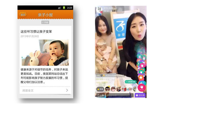 案例5:通过微信公众号传播育儿知识,引导宝妈分享。通过直播分享育儿经,带动宝妈互动。