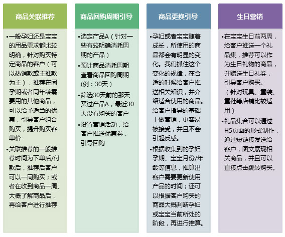 客户服务主要包括三部分,一是订单流程服务,即在客户购买过程中实时跟进客户状态,解决问题提供服务。二则为主动关怀,则是对于没有处于购物期的老客进行关怀,提升老客对品牌及店铺的好感度,同时防止无购物期间客户对店铺遗忘。三是特色服务利用母婴类目客群爱交流、爱分享、爱倾诉的特性,给他们组建分享平台,带动客户活跃性的同时,也让客户拥有了解客户的最佳渠道。